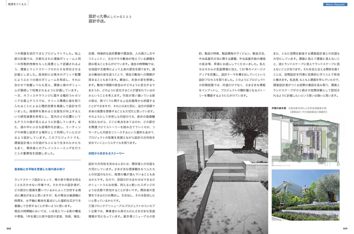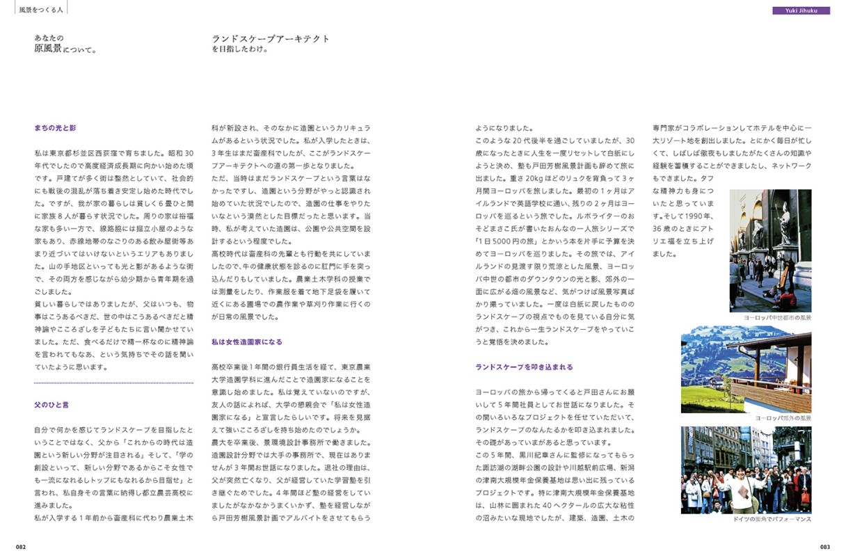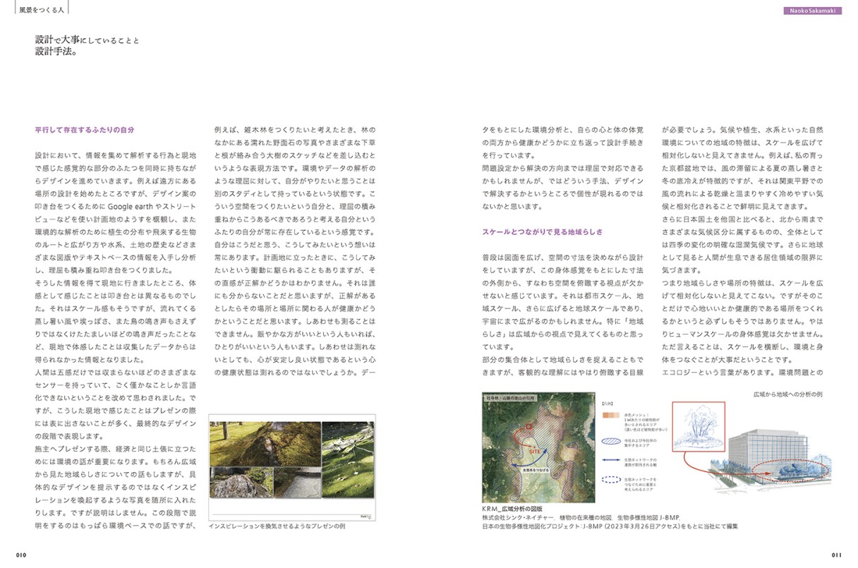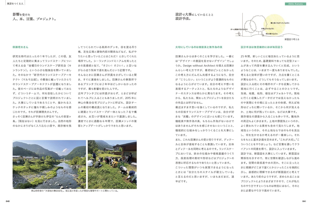 ランドスケープアーキテクトインタビュー特集の第2弾。ランドスケープ設計・デザイン事務所を営む女性ランドスケープアーキテクト6人にインタビューしました。1.原風景について、2.ランドスケープアーキテクトになった理由、3.影響を受けた人・本・プロジェクトについて、4.設計で大事にしていること、社会との関わり方、5.将来のアーキテクトに向けてという5つのテーマについて語っています。ランドスケープアーキテクトの職能と設計領域が理解できる1冊です。