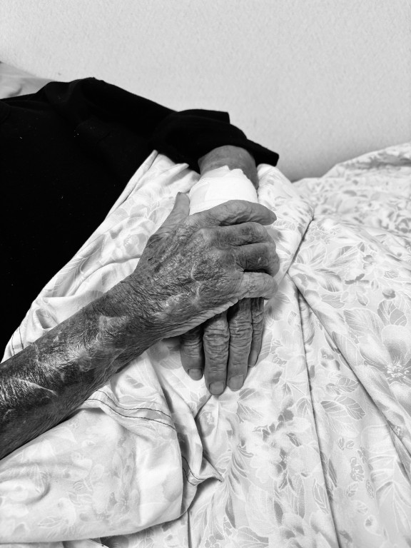 95歳の父の手。現在は施設で余生を送っているが、深いしわとすっかり薄くなってしまった皮膚は95年生きてきた証である。浅草生まれ、浅草育ちの父は東京大空襲を生き延びた。当日、家族は全員福島に疎開し、14歳の父はひとりで家に残っていた。外の騒ぎに目を覚ましたときは炎が家の近くまで迫っていたという。何も持たずに家を飛び出すとみんなが隅田川に向かって逃げていたなか、父が選択した逃走経路は銀座線田原町駅から地下鉄の線路を上野に向かうものであった。日頃、父の父から「火が出たときは川には逃げるな。炎が水面を走るから危険だ」と教えられていたからだ。こうして無事に上野に辿り着いた父は、上野公園の高台から自宅の方角を見た。空の半分が橙色に染まるほど浅草は炎に包まれていたという。一夜明け自宅に行くとすべてが焼き尽くされ何も残っていなかった。上野駅の地下道にいると焼き残った柱に印し、その日から上野を根城にした生活が始まった。だが父は希望を失わなかった。学徒動員で国鉄で働いていた父は顔がきく。朝イチの電車に乗ると船橋へ向かった。ここで漁師の水揚げを手伝い、駄賃としてリュックいっぱいの魚をもらっていた。その魚を上野の闇市で売り捌き食事代にあてていが、上野には両親を亡くしたいわゆる浮浪児が溢れていた。父は残りのお金をすべて浮浪児のために使ったという。明日船橋に行けばまた魚がもらえるからだ。以来、父が上野を歩くとたくさんの子どもが金魚のフンのように後をついてきたという。そのようすを見て声をかけてきた大人がいる。地元のヤクザ関根組の組長であった…。 この続きはまたの機会に。